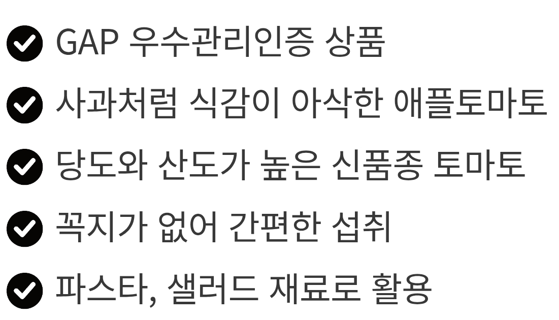 장점 1. 단맛이 확실하다일반 방울토마토의 신맛을 부담스러워하는 사람도 간식처럼 먹기 쉽다.